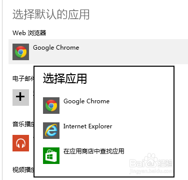 4:如果是修改默认浏览器,单击web浏览器,在出现的下拉列表中选择我们要修改的默认程序