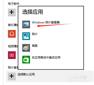 5:这里再拿图片程序举例,单击照片查看器下面的加号,选择一个应用程序
