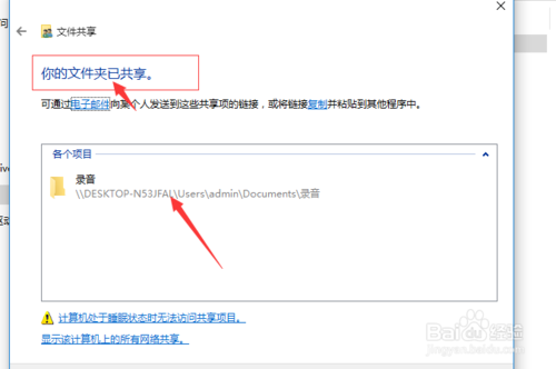 8:然后就可以看到的是的文件已共享了提示的信息。