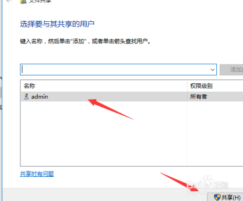 6:进入到了文件共享的进行选中用户,然后进行点击 共享 即可。