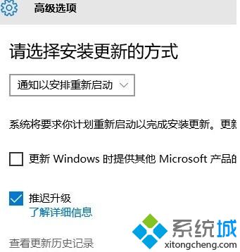 4、在高级选项下面点击【查看更新历史记录】,如图: