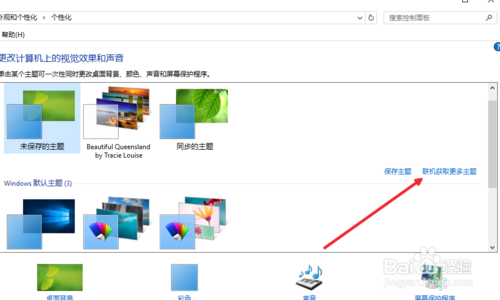 6:然后在这里我们就可以选择我们的主题了,不过我们需要先下载主题,这里有个联机获得更多主题。