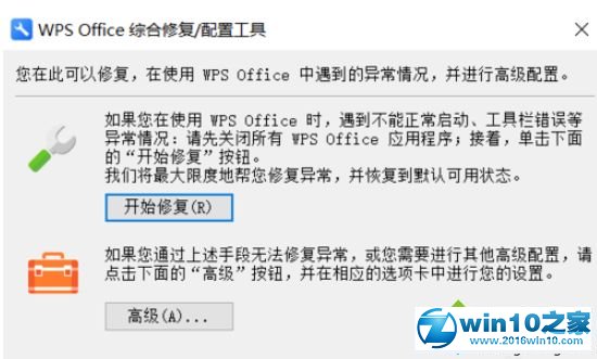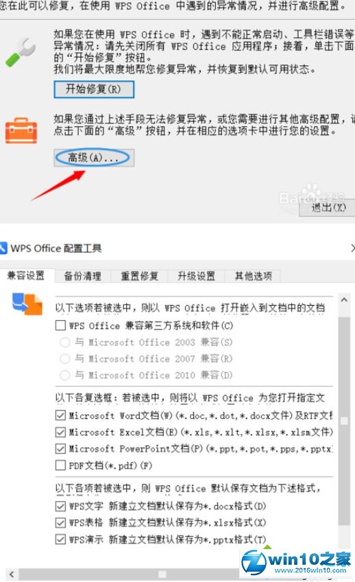 3、在该窗口点击"高级",然后就会切换至wps office配置工具窗口,如下图;