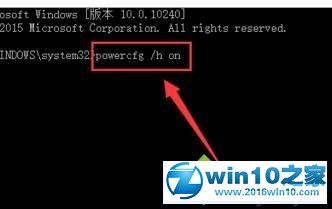 输入powercfg /h on命令,注意空格,回车,没有什么提示,不用管它