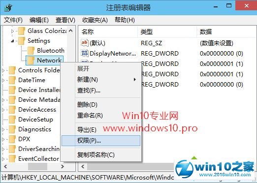 12、现在已经获取了network项的“完全控制”权限。我们可以对它及其下下键值进行删除、修改等操作了。