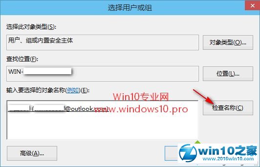 8、在“输入要选择的对象名称”框中输入当前用户名,然后点击右侧的“检查名称”按钮。如果输入正确,点击“检查名称”之后就会自动把你输入的对象名称显示为标准的用户名称,并添加下划线(如上图);反之,如果输入的用户名错误,点击“检查名称”之后就会显示提示;
