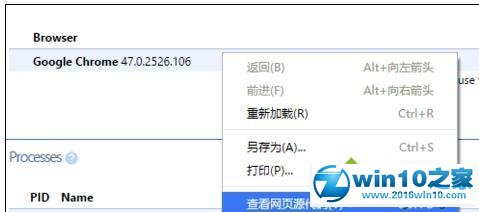 6、我们在此页面上的浏览器进程上右击鼠标,还可以查看打开网页的源代码。