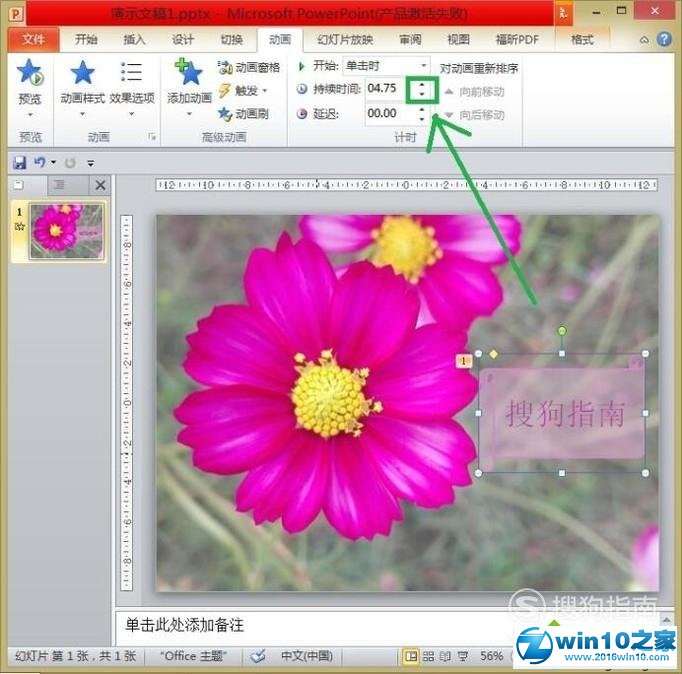 5、调整动画时间,需要增加时间点击向上的三角形,需要缩短时间则点击向下的三角形。