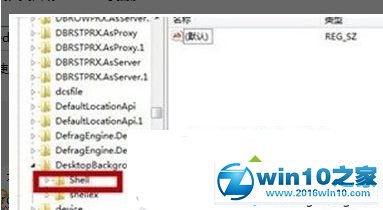2、接下来,在注册表编辑器的左侧菜单中依次展开HKEY_CLAssEs_RooT”-“desktopBackground”-“shell”;