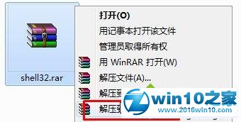 5、然后打开源文件所在路径:C:\windows\system32,将解压出来的“sHELL32.dll”复制进去,若弹出是否覆盖提示,选择替换并复制。