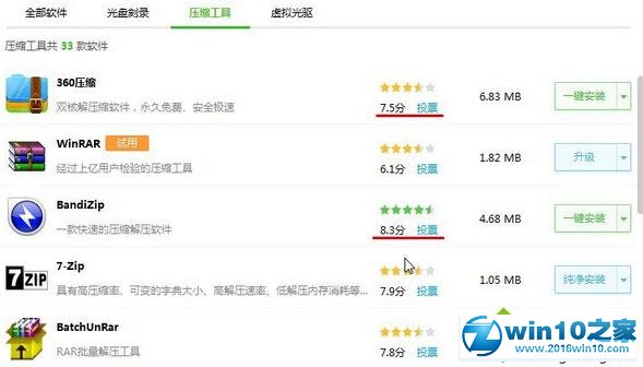 3、这是后出现很多解压缩软件,我们可以选择自己喜欢的软件,或者下载使用评分高的解压软件,点击后面的“一键安装”、“纯净安装”即可;
