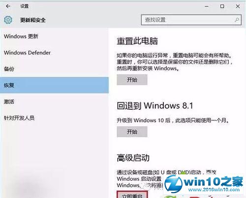 6、这里给出了下次重启后的主要选项,点击“重启”按钮进行;