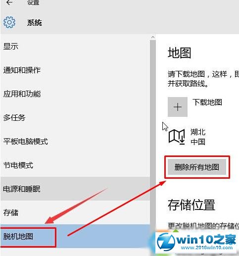 5、在右侧点击“脱机地图”,然后在右侧“删除所有地图”,删除完成后重启计算机,重新下载地图即可解决。