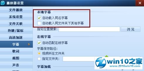 3、在左边切换到字幕的选项卡,可以自动载入字幕,也可以本地关联字幕。