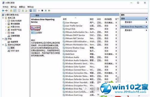 11、再找到 windows Error Reporting service,单击后同样在左侧点击“停止此服务”;