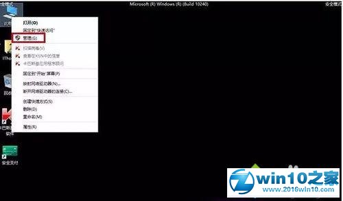 8、进入桌面后,在“计算机”图标点击右键,选择“管理”;