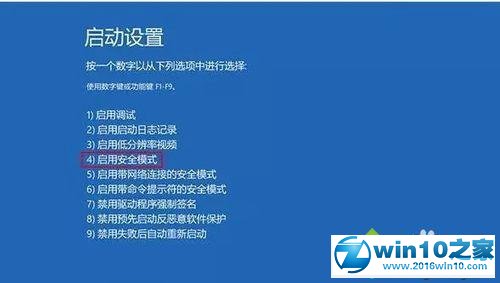7、重启后停留在选择画面,按键盘“4”或者“F4”键进入安全模式;