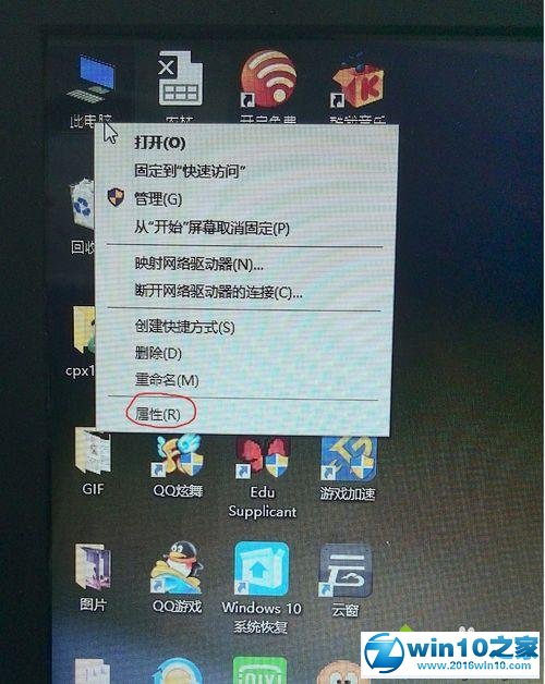 1、在桌面上鼠标右键点击“此电脑”找到属性,左键点击属性。
