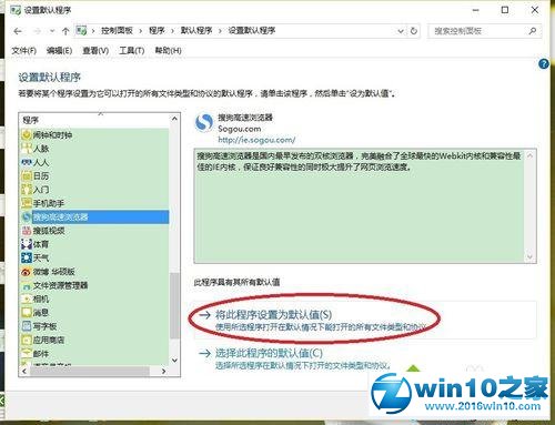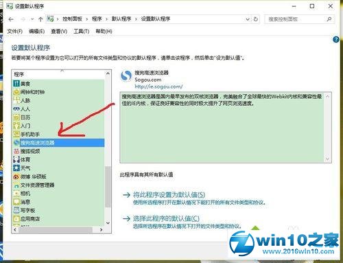 7、鼠标拖动这一栏下拉,找到你想设置为默认的浏览器。(此处以搜狗浏览器为例)。