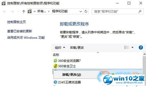 2、在程序和功能界面找到“Adsafe”(净网大师),单击右键,选择“卸载”,完成后重启计算机。