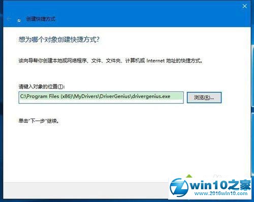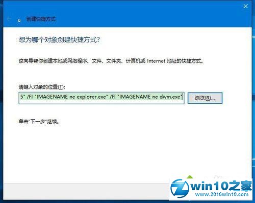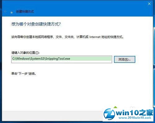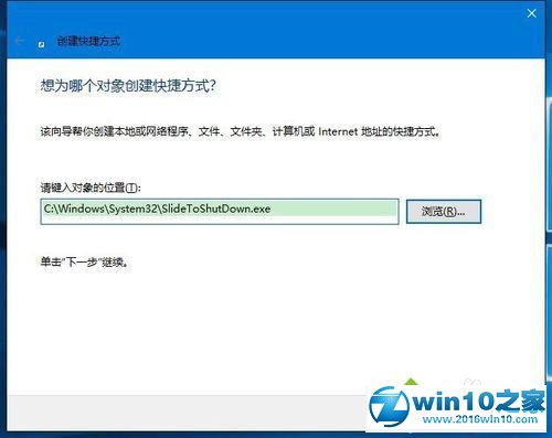 2、在打开的创建快捷方式-请键入对象的位置(T)窗口,输入: