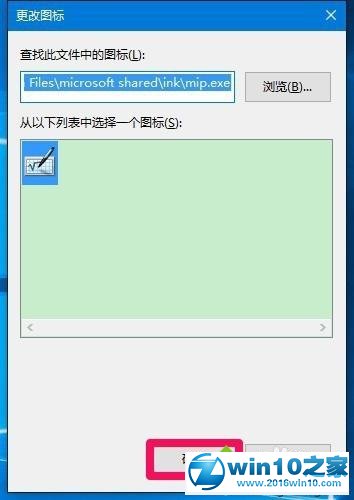 6、在更改图标窗口,默认系统给出的图标,点击:确定;