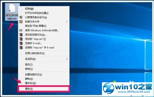 4、此时系统桌面上就显示了一个【数学输入面板mip.exe】的快捷方式图标,右键点击这个图标 - 属性;
