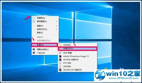 右键点击系统桌面空白处,在右键菜单中点击【新建(w)】-【快捷方式(s)】;