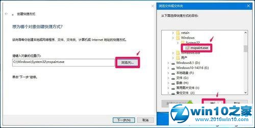 在打开的创建快捷方式-请键入对象的位置(T)窗口,可以点击浏览,再按照下面的路径C:\windows.old\windows\system32\mspaint.exe,找到mspaint.exe文件,点击mspaint.exe文件夹,再点击:确定。