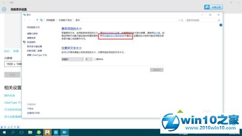 4、更改项目的大小处点击可设置自定义缩放级别,设置自定义缩放级别可能会导致在某些显示器上出现意外行为。