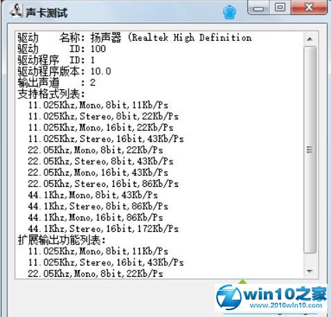 测试声卡信息:对应信息可以设置声卡的16或24位宽和HZ采样率的设置。