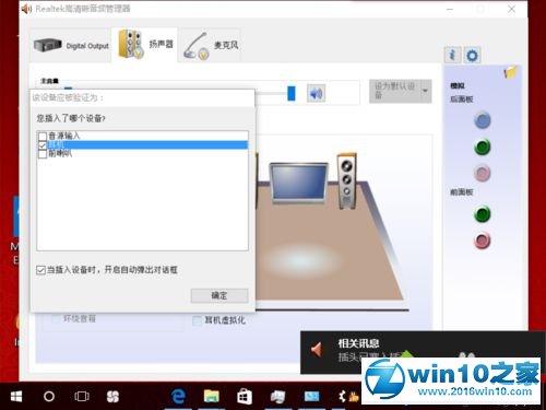 如果我们要用后面板接耳机,就需要我们把后面板的插孔设置为:——耳机。