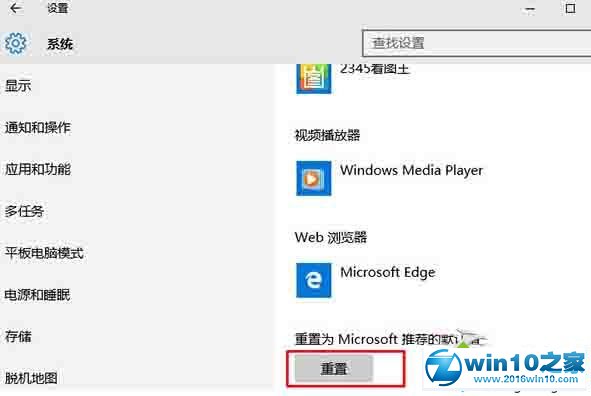 依次打开:开始菜单—设置—系统—默认应用—“重置”。