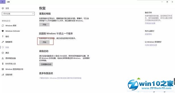 2.选择【回退到windows 10上一版本】,点击【开始】;