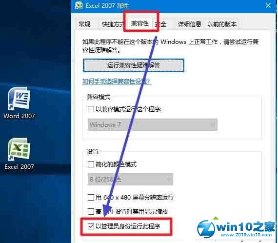4. 完全同样的操作,对woRd 2007和powerpoint 2007的桌面快捷方式,也做同样的操作。以后就都能正常使用了。