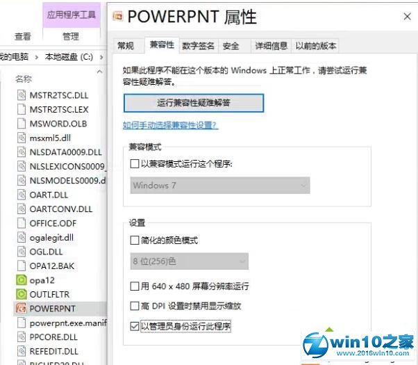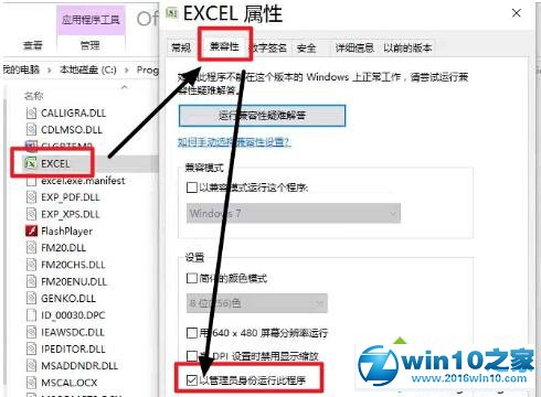 2. 看图,点击“兼容性”,然后勾选最下面的:以管理员身份运行此程序。