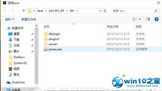 4、那么,现在是最重要的时刻了,找到你的JAVA路径,然后点击这个有java.exe和javaw.exe 两个选项: