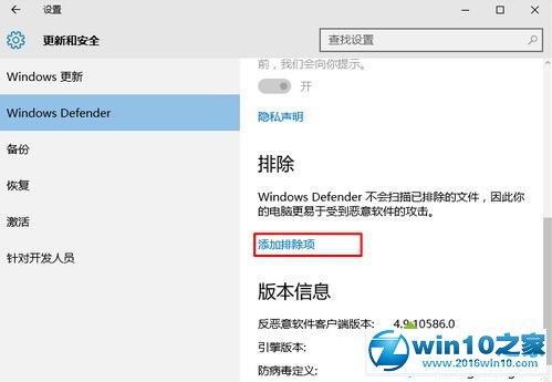2、点击开始菜单—设置—安全和更新—windows defender。