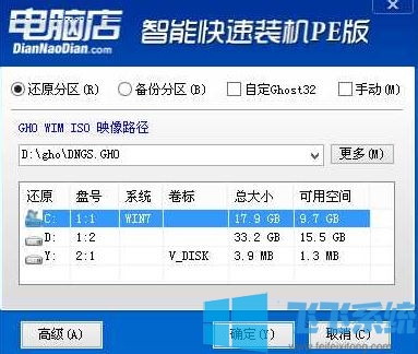 7、运行桌面上的一键装机等工具,只要选择要安装的win7.GHo 然后选中C盘,确定即可。