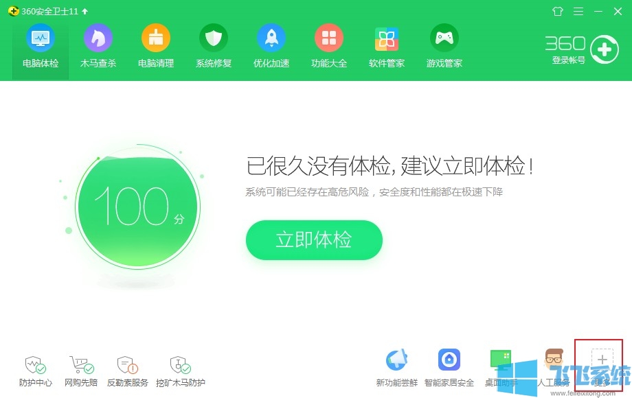 1、打开腾讯电脑管家,在主界面的右下角可以看到一个加号的“更多”选项,你们点击打开它;