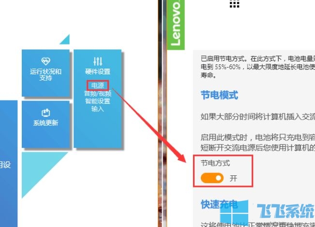 2、Lenovo Vantage:打开Lenovo Vantage→点击电源→打开后即可开关养护模式